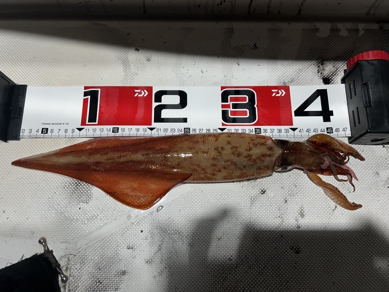 電気オン💡ウネリはありましたが、なんとか釣りもできそう いきなり上がってきます 皆さんの竿も曲がり出しますが、ウネリの為あたりもとりにくい… そこから、ペースはポツポツですが誰かの竿が曲がってます 後半、1人だけイレポン状態❗️一気に数がでます 他の人はポロポロ…何が違うのか オモリグとメタルの違いで今日はオモリグDAY 結局,最後まで1人舞台でした ウネリは終始ありましたが、なんとか定時までやり納竿としました ムラがついた釣果でした